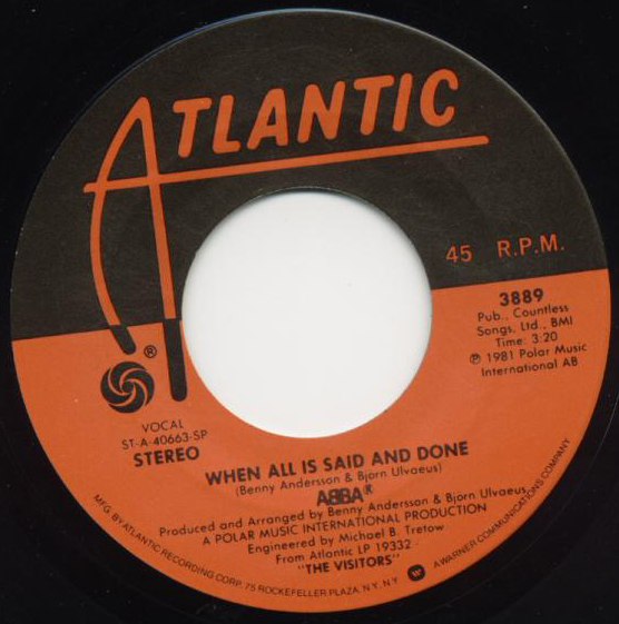 By Donnie Thompson While I nodded, nearly napping, suddenly there came a tapping, As of some one gently rapping, rapping at my chamber door. "Tis some visitor," I muttered, "tapping at my chamber door"… Edgar Allan Poe – "The Raven" 1845 " A catchy chorus or two cannot hide the fact that Abba is in a slump" claimed a review of Abba’s "The Visitors" by a major music magazine in 1981. Often dismissed as an album by a band that was tired and out of ideas by critics, "The Visitors" in actuality is Abba offering up their darkly beautiful swan song. Book- ended by two songs that in scenario, seem to draw inspiration from Edgar Allen Poe’s gothic poem "The Raven", the album begins with the eerie title song (subtitled on the lyric sheet "Crackin’ Up"). The track starts with a droning synthesizer. After 30 seconds lead singer Frida’s voice rises up out of the mix sounding very compressed, a lot like Lennon’s on The Beatles "Tomorrow Never Knows". Frida had spent fifteen days before the session experimenting with her voice trying to replicate the sound of a sitar. We find the lead character of the song locked in her room among her books and paintings frozen in a panic as some mysterious visitors are ringing her bell trying to gain entry. The enigmatic lyric of this song kept me curious for several years as to it’s subject. I assumed by the sub-title that it concerned someone who had lost a few wits and was about to be taken away. Although it fits well on that level, it was around 1987 that another music collector informed me that the song was actually a veiled story about Soviet dissidents. The third verse goes: These walls have witnessed all the anguish of humiliation And seen the hope of freedom glow in shining faces And now they’ve come to take me, come to break me And yet it isn’t unexpected I have been waiting for these visitors Help me The second track is the upbeat hook- filled "Head Over heels". Beginning with one of Benny Andersson’s catchiest neo- classical synth riffs ever, the song tells about a gregarious woman, admired by all who know her. But by the second verse we learn she is the domineering half of a dysfunctional relationship with her man. Of the album, this track is probably the closest in sound and playfulness to the Abba of old. With it’s great layered harmonies it became a moderate hit in Europe. Next up is "When All is Said And Done" which was pulled as the single in the U. S. The track has a Euro-dance-synth type arrangement with some electronic vocal effects alongside the traditional Abba harmonies. It’s basically a farewell by a couple who are shaking hands and parting ways: Here’s to us, one more toast And then we’ll pay the bill Deep inside both of us Can feel the autumn chill Abba had touched on this theme before in "Knowing Me, Knowing You" and "The Winner Takes It all". It seems fitting that this song would be Abba’s final top 40 hit in the U. S. Though not as sterling in quality as the previous tracks, "Soldiers" continues the lyrical anxiety of the first track, this time painting pictures of impending political unrest and war. Played over an unusual mid-tempo drum pattern the song comes across like a vague sequel to "Fernando". The next track up "I Let The Music Speak" is one of the most stunningly beautiful in the entire Abba canon. Coming across much like a Broadway show tune with heavy classical influences, the song’s subject matter is about music being a means of expression and of escape to a place… "Where I’m one with every grand illusion, no distractions, no intrusions" Decorating the track with a gorgeous orchestral- like arrangement, Benny and Bjorn eagerly drive Abba toward their own ambitions of a full-blown musical. They had dabbled with this genre before (" The Girl With The Golden Hair") but not with this much finesse and eloquence. "One Of Us" contains another classic Abba melody and carries on with the album’s theme of separation. This mid-tempo ballad about regrets over an ended relationship was a hit in Europe. This is one that you will find yourself humming hours after you’ve heard it. The following track "Two For The Price Of One" tells the story of a man perusing the matrimonial advertising pages. Although it was obviously meant to be the album’s light- hearted novelty tune with a cute story, The character in the song is still a lonely railway worker…" with no romance in his life, sometimes he wished he had a wife" . He still comes away with his situation unresolved in the end. "Slipping through My Fingers" concerns a mother’s wistful contemplations of her relationship with her daughter who she fears is drifting away from her too quickly as the girl reaches school age and heads out into the world. Abba had attempted this kind of cinematic "lump in throat" ballad before, but due to this one’s more common yet personal subject matter, it comes off less contrived and more poignant. The song ends with the coda: Schoolbag in hand She leaves home in the early morning Waving goodbye with an absent minded smile And once again our protagonist is left alone with her thoughts and memories as the song cross-fades into the next track. "Like An Angel Passing Through My Room" begins with the sound of a ticking metronome creating a clock- like effect and a music-box sounding keyboard to back Frida’s lone vocal. The track is solemnly beautiful. Several different arrangements were taped before this haunting stripped-down version was chosen. Sitting in the glow of the fireplace the character begins to reminisce: Half awake and half in dreams Seeing long forgotten scenes So the present runs into the past Now and then become entwined Playing games within my mind Like the embers as they die Love was one prolonged goodbye And it all comes back to me tonight In the gloom Like an angel passing through my room The lyric works on several levels. It could be about the end of a day, the end of a relationship, or the end of